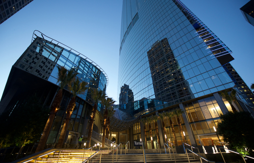 Seeking to revitalize the site of the once thriving Wilshire Grand Hotel in downtown Los Angeles, development of the Wilshire Grand Center forever changed the skyline and became a vital part of the ongoing downtown renaissance. As the first skyscraper in Los Angeles built without a flat roof, the seventy-three-story mixed-use office and hotel tower stood as the tallest building west of Chicago at the time of its completion. As a destination for business travelers and tourists, the four-star InterContinental hotel sets the standard for luxury accommodations. Guests check-in on the 73rd floor sky lobby - a first in Los Angeles where they have breathtaking 360-degree views of the city. The commercial spaces include retail, restaurants and Class A office space.
